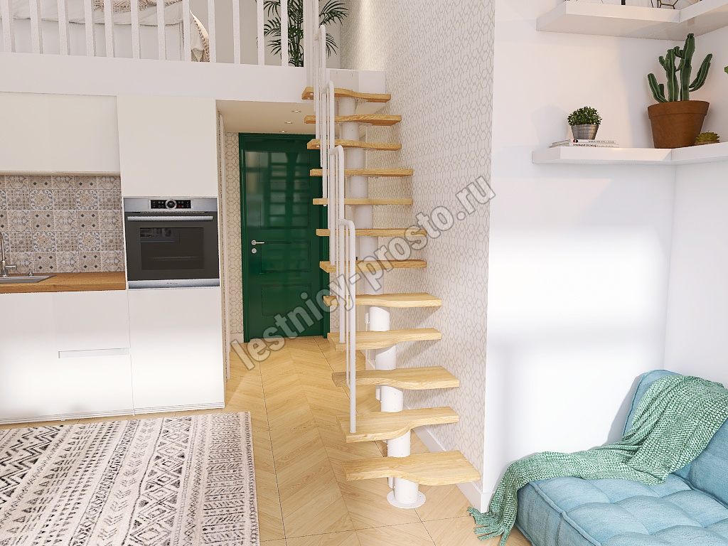 Лестница Prosto Urban White гусиный шаг 600 мм, h216-312 см (12 ступеней), дуб