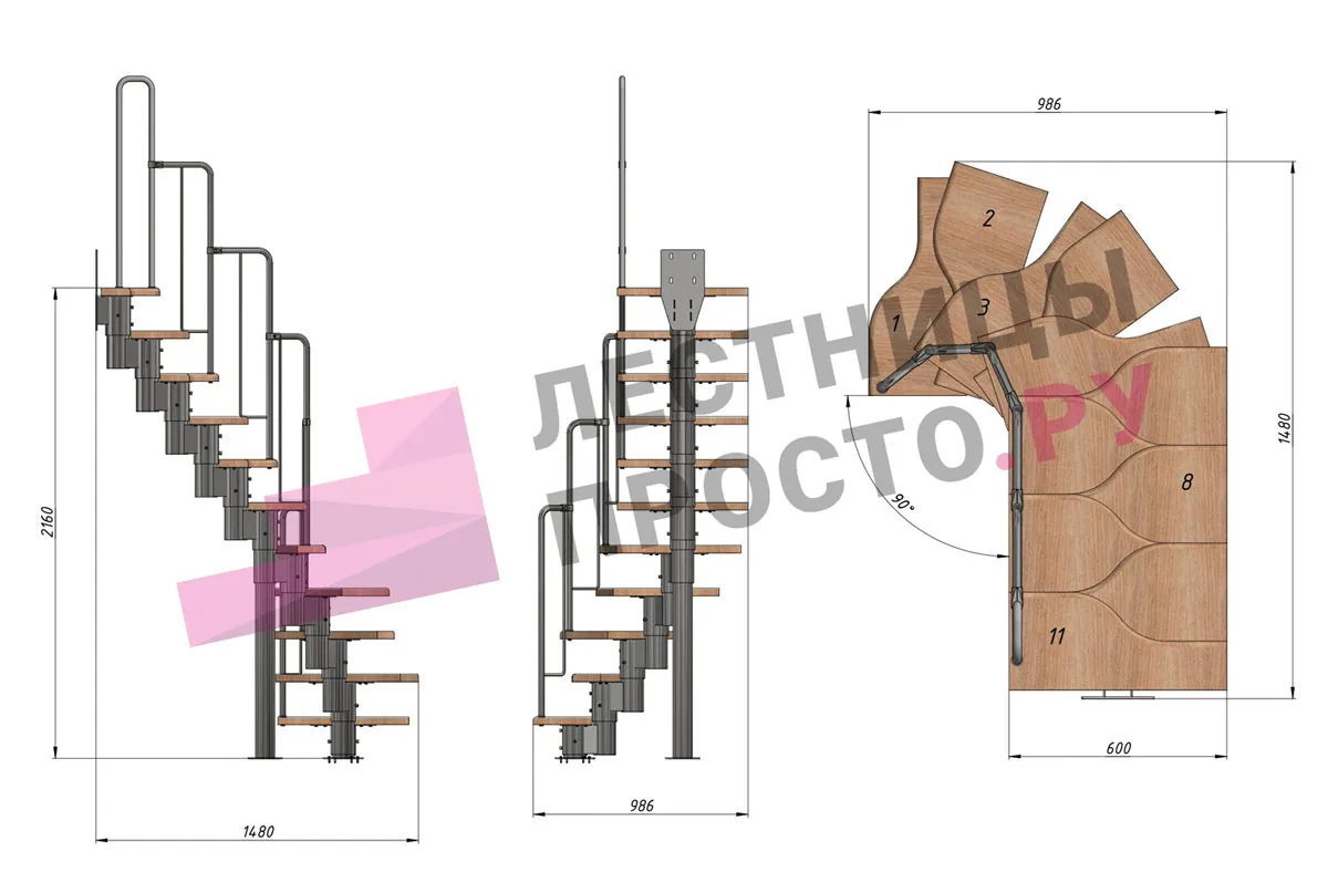 Высота лестницы 1800 - 3360 мм