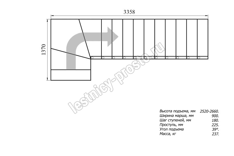 Модульная лестница Фаворит 180 2520-2660, Серый, Лиственница, Нержавеющая сталь