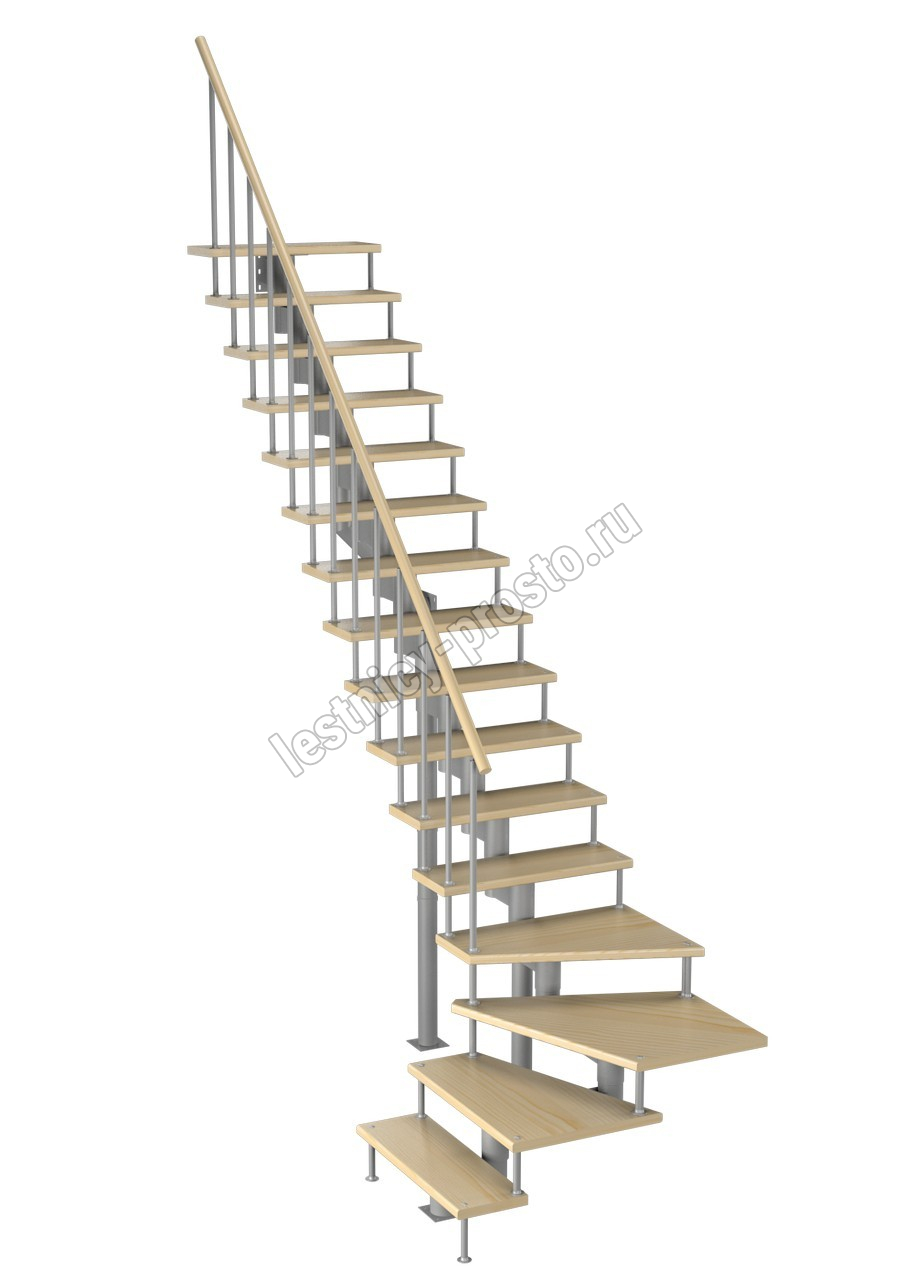 Модульная лестница Фаворит 180 2880-3040, Серый, Сосна, Нержавеющая сталь