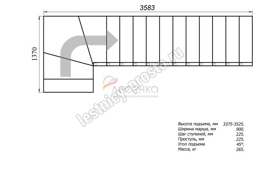 Модульная лестница Фаворит 225 3375-3525, Черный, Бук, Нержавеющая сталь