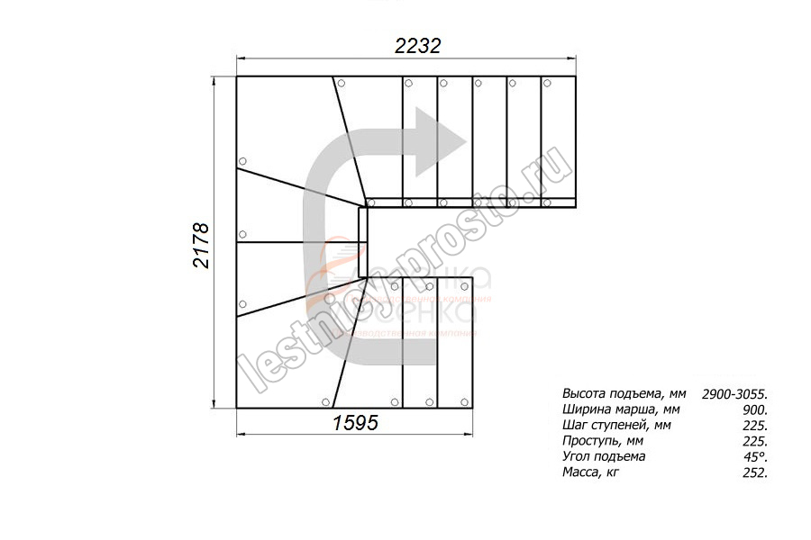Модульная лестница Спринт 225 2925-3055, Серый, Лиственница, Нержавеющая сталь