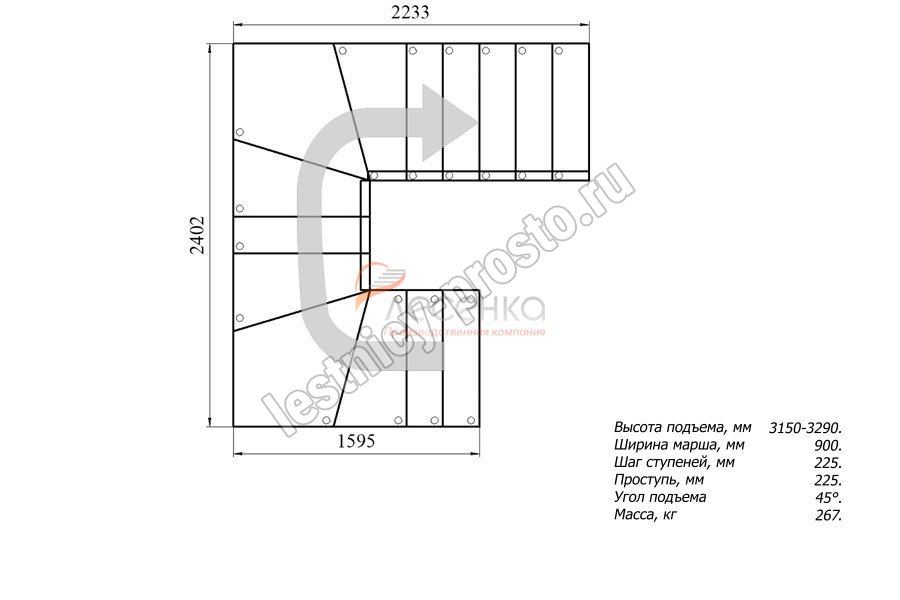 Модульная лестница Спринт 225 3150-3290, Черный, Сосна, Крашеная