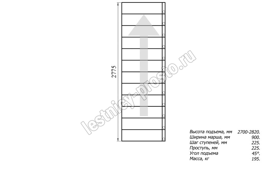 Модульная лестница Стандарт 2700-2820, Серый, Сосна, Крашеная, Без Ступений