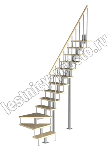 Модульная малогабаритная лестница Компакт 2925-3150, Серый, Лиственница, Нержавеющая сталь