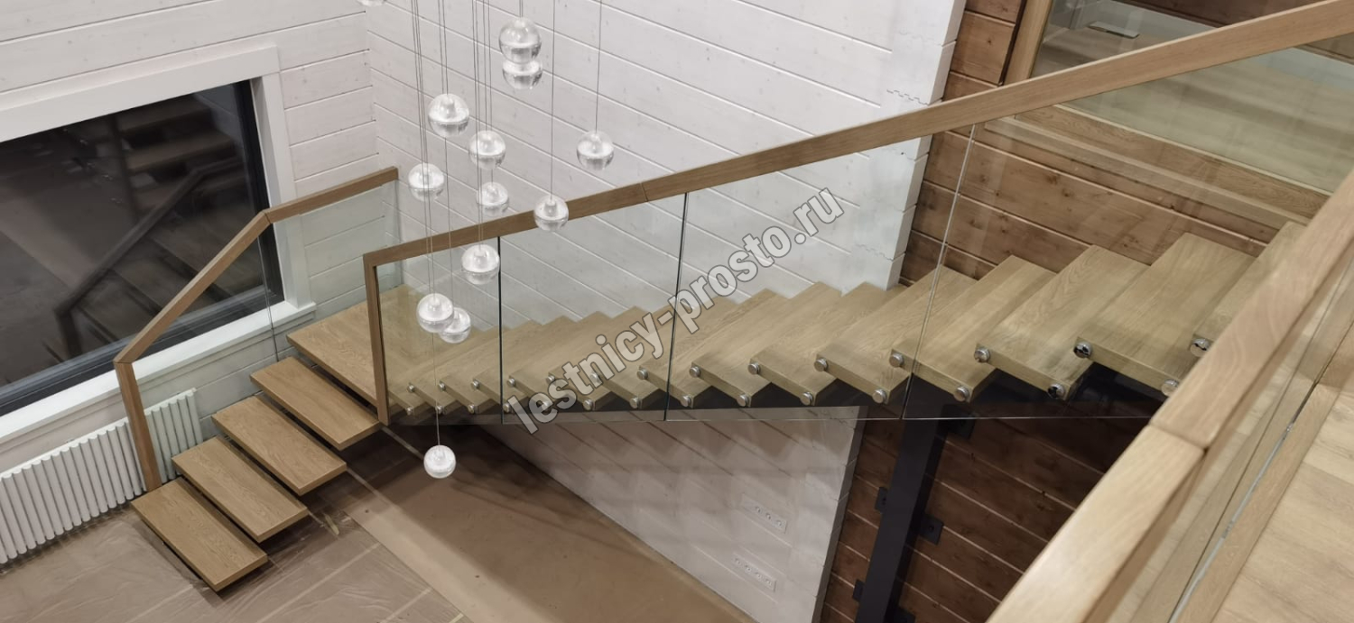 Стеклянная лестница из ясеня LP-2935 с металлическим каркасом