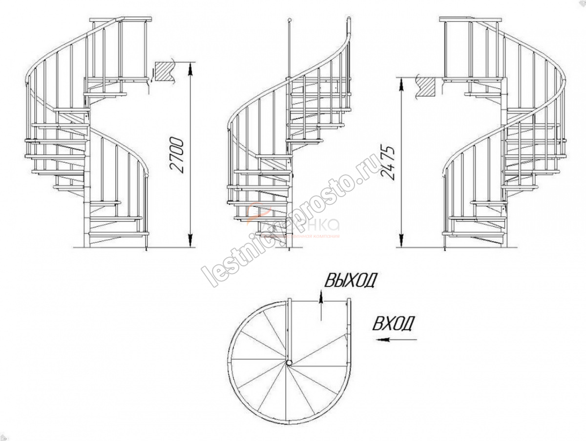 Винтовая лестница ЛЕС-1,8 высота 2475-2700, Белый, Лиственница