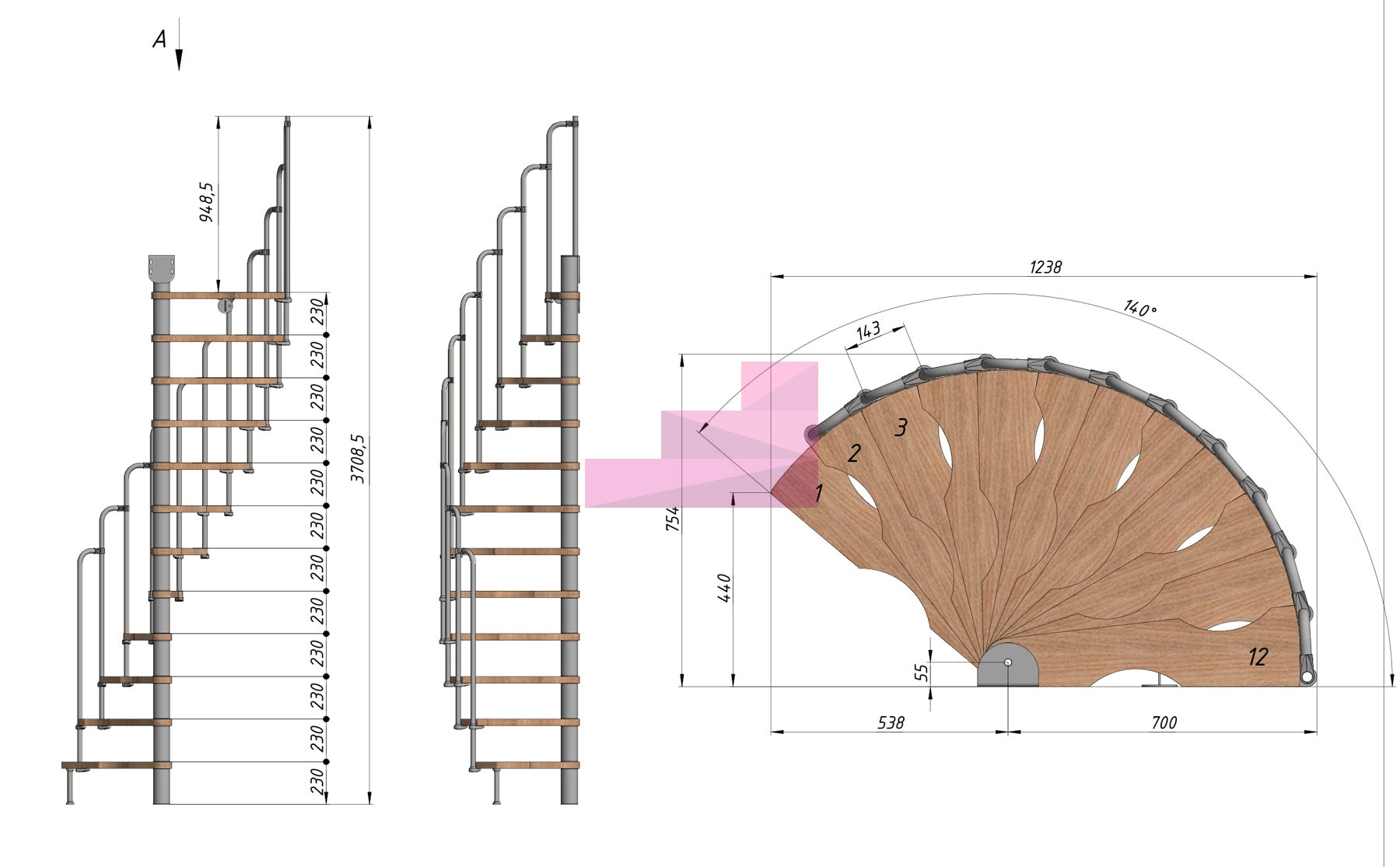 Винтовая лестница PROSTO MINI 70×140 см, h276-299 см