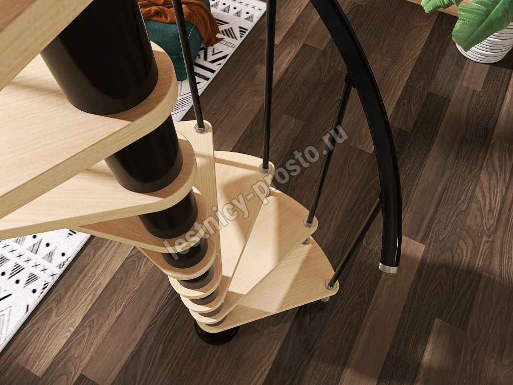 Винтовая лестница Prosto Spiral Black D120см, h260.5-304.6 см, бук