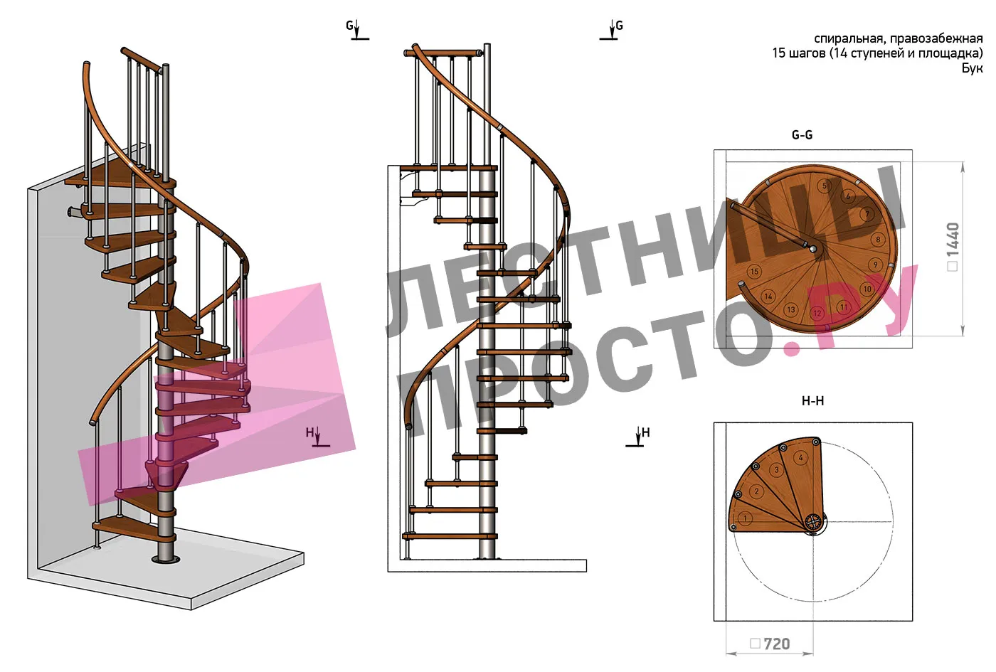 Решение об ориентации поворота принимается при сборке лестницы (комплект собирается и в правозабежную, и в левозабежную лестницу).
