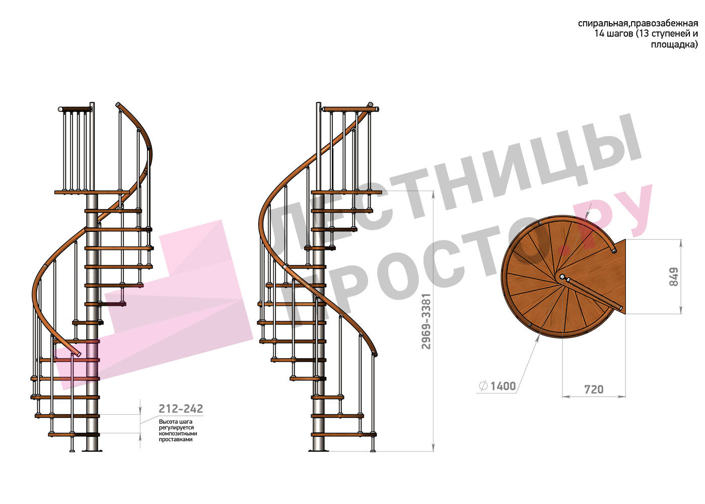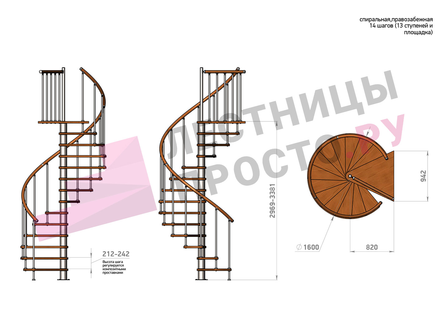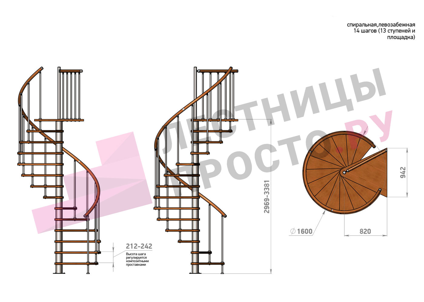 | Винтовая лестница Prosto Spiral Black D140см, h275.7-313.9 см |