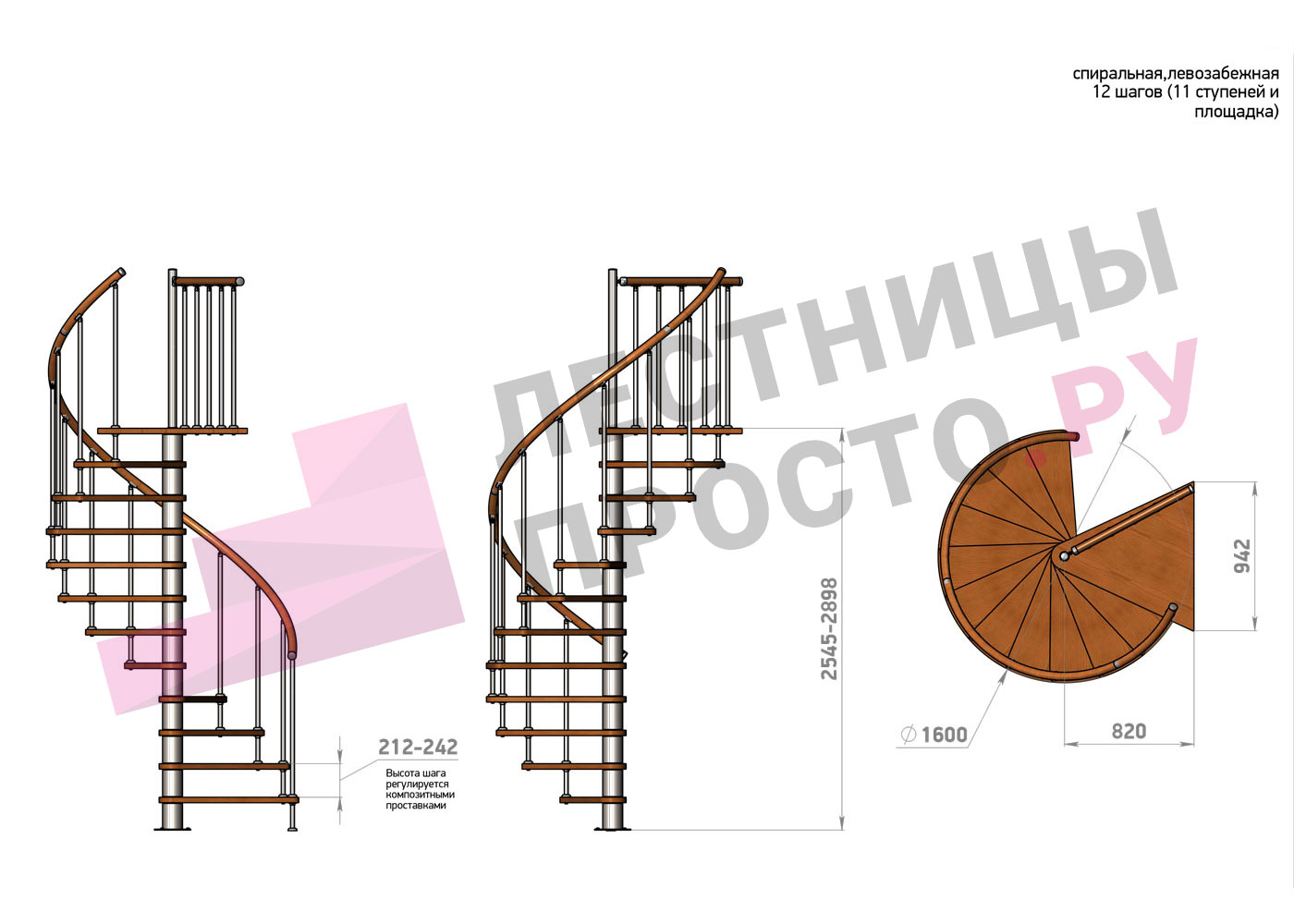 | Винтовая лестница Prosto Spiral Black D160см, h275.7-313.9 см |
