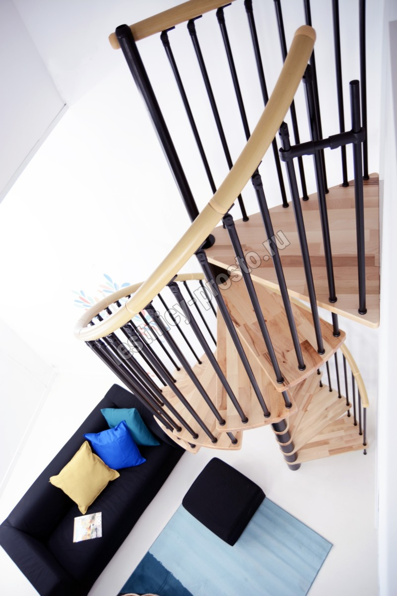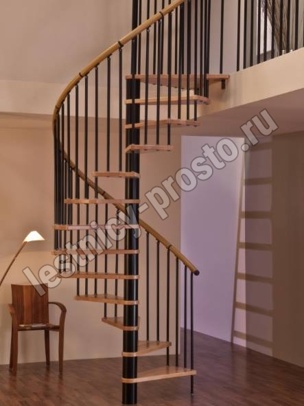 Поручень изготовлен из массива дуба в тон ступеням. Поручень и ступени лестницы покрыты износостойким защитным лаком.