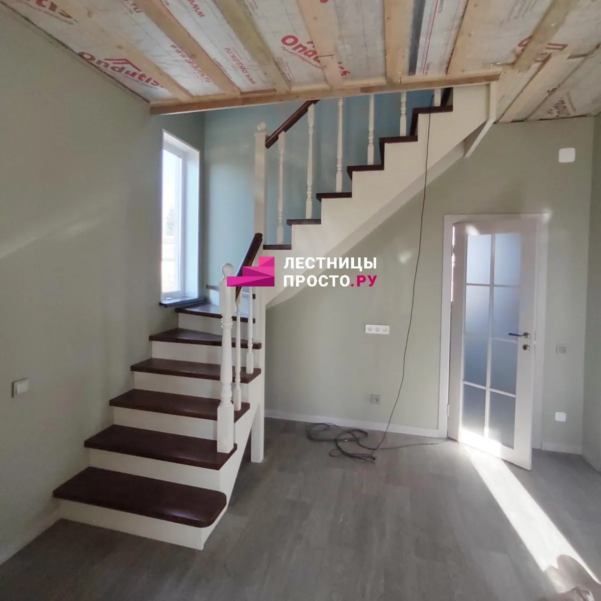 Лестница LP из сосны на второй этаж с поворотом на 180 градусов