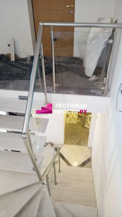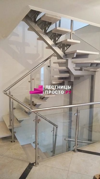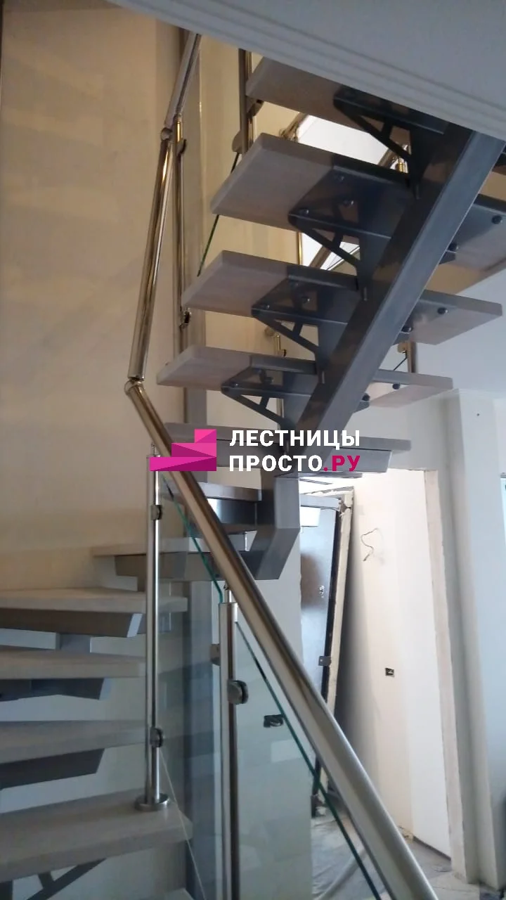 Лестница на центральном каркасе, со стеклом и нержавейкой ЛП 702