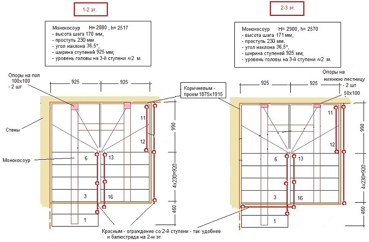 Поворот на 180°, забежные ступени, лестница с 1 на 3 эт.