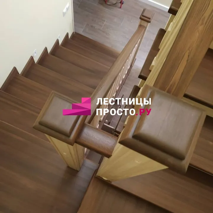 Для обшивки ступеней использована срощенная лиственница категории АВ.
